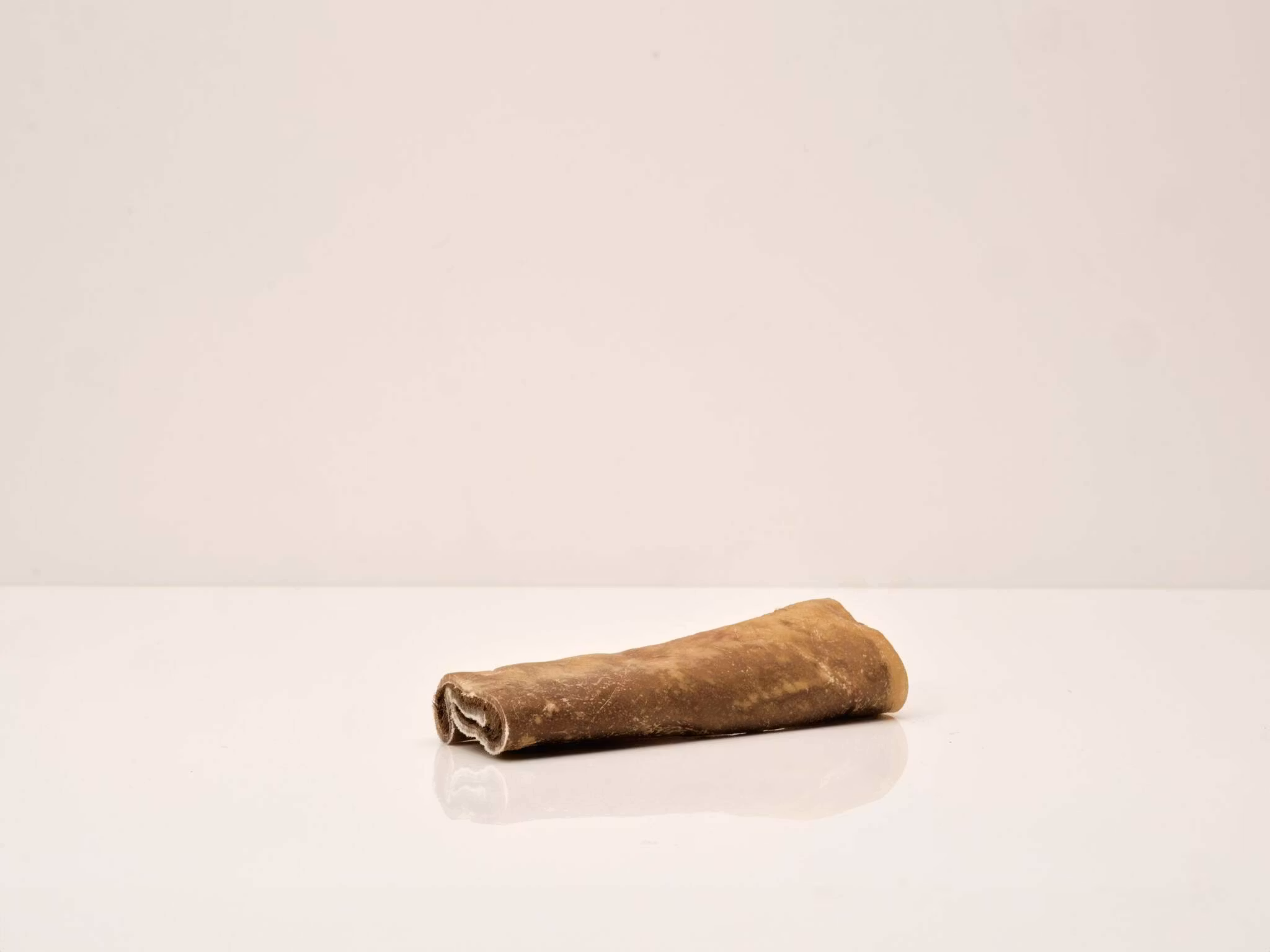 Njords nötrulle är ett naturligt tuggben, tillverkat för hand av svensk kohud från lokala gårdar. Tugget kladdar mindre och håller längre eftersom hela hud